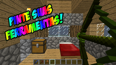 Eu já trouxe aqui no blog um mod para colorir as armaduras e também a cor dos baús. Então, por que não alterar a cor das ferramentas também? Com esse mod é muito simples: basta colocar a ferramenta mais algum corante na mesa de trabalho e pronto!